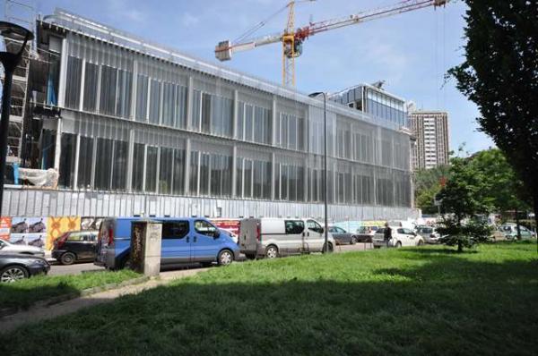 Nuova sede di una Multinazionale a Milano. L’edificio si sviluppa su 3 piani fuori terra e 2 interrati, esternamente è composto da lamelle frangisole orientabili in cristallo sovrapposte e da lamiera microforata in acciaio inox che proteggono l’involucro interno delle pareti perimetrali vetrate. Il controllo elettronico dei parametri di luminosità, soleggiamento e impatto termico ottimizza l’orientamento del sistema frangisole, in modo da garantire condizioni di comfort e vivibilità negli spazi interni. L’edificio presenta una struttura in cemento armato (pareti e solai) per tutti i piani interrati, per i piani fuori terra nella zona centrale, per i corpi scala e ascensori. Sui fronti la struttura è realizzata in carpenteria metallica a pilastri e travi reticolari fino alla copertura, con solai intermedi a lamiera grecata non collaborante e solai in calcestruzzo alleggerito con argilla espansa. Nella gestione del cantiere è stata utilizzata la tecnica costruttiva dall’alto verso il basso (top-down), che rende l’area di lavoro pressoché coincidente con l’area perimetrale dell’edificio. Gli spazi interni presentano un elevato livello di attenzione: pareti divisorie in cristallo, porte in acciaio inox, pavimenti sopraelevati in linoleum e legno, boiserie in legno di teak corrispondono alla raffinata immagine di un’azienda di rinomanza internazionale.